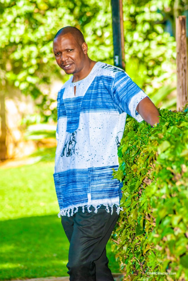 The perfect pairing of on of our best batik jumpsuits and the bold Ethnik elephant print top for him. Choose your preferred colors, fabrics, and fit for a truly unique look. Each piece is handcrafted with premium African fabrics, ensuring quality and style.