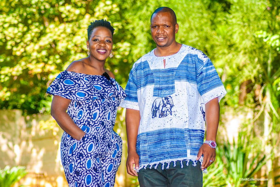 The vibrant batik jumpsuit for her pairs perfectly with the bold elephant print top for him. Choose your preferred colors, fabrics, and fit for a truly unique look. Each piece is handcrafted with premium African fabrics, ensuring quality and style.