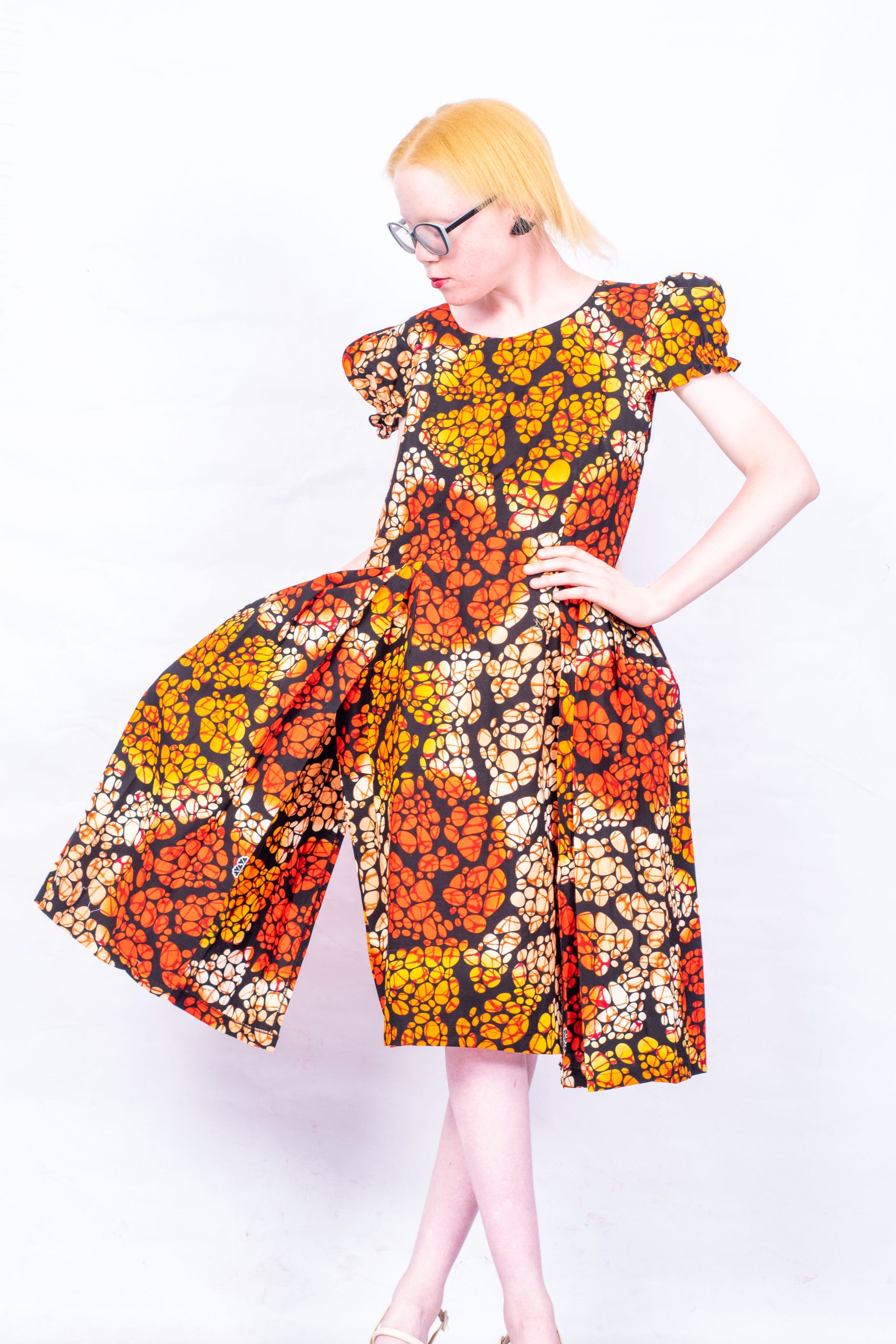This dress brings warmth and elegance with its rich batik-inspired print. Featuring playful puff sleeves and a flowy silhouette, this dress is perfect for standing out effortlessly. Whether you’re heading to a casual brunch or an evening event, this statement piece ensures you stay